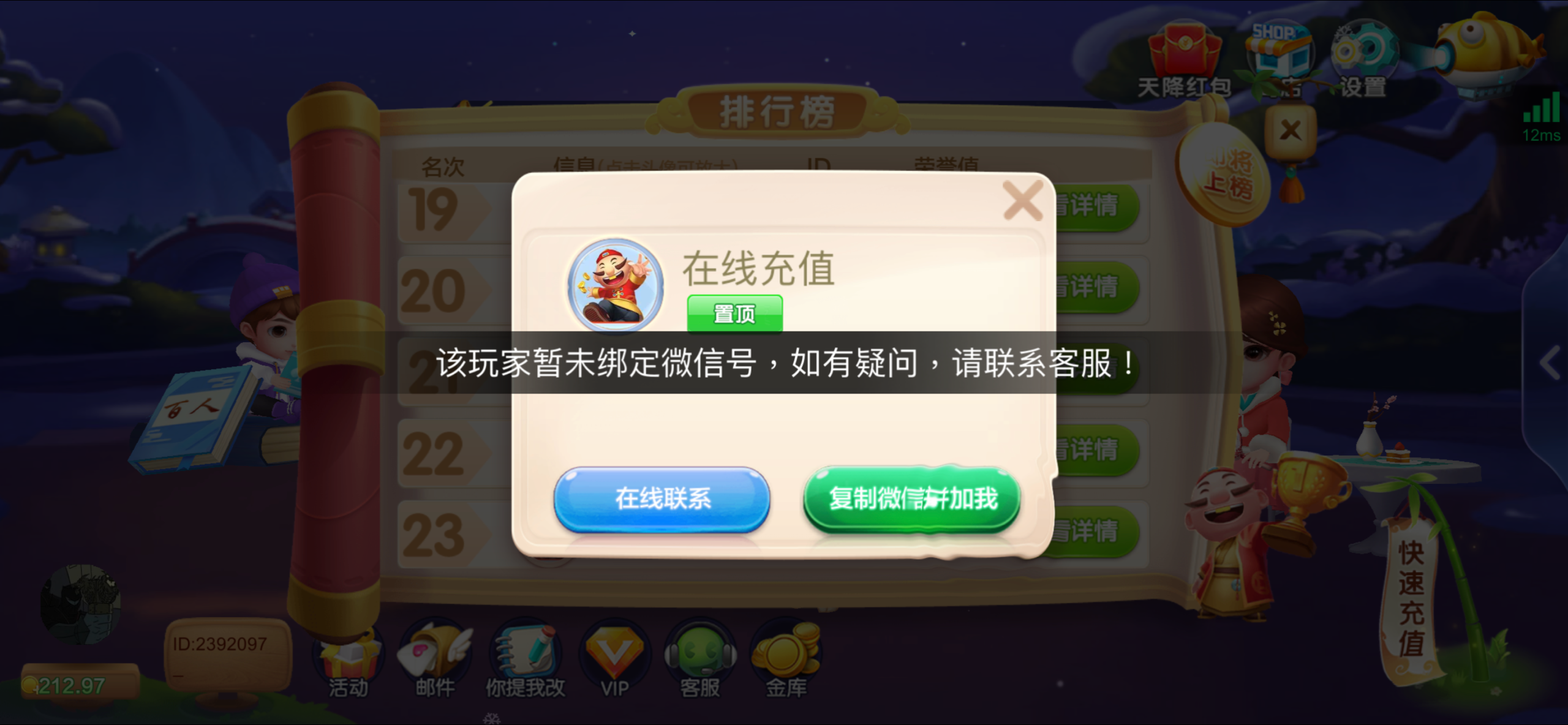 充值榜也没微信这咋搞