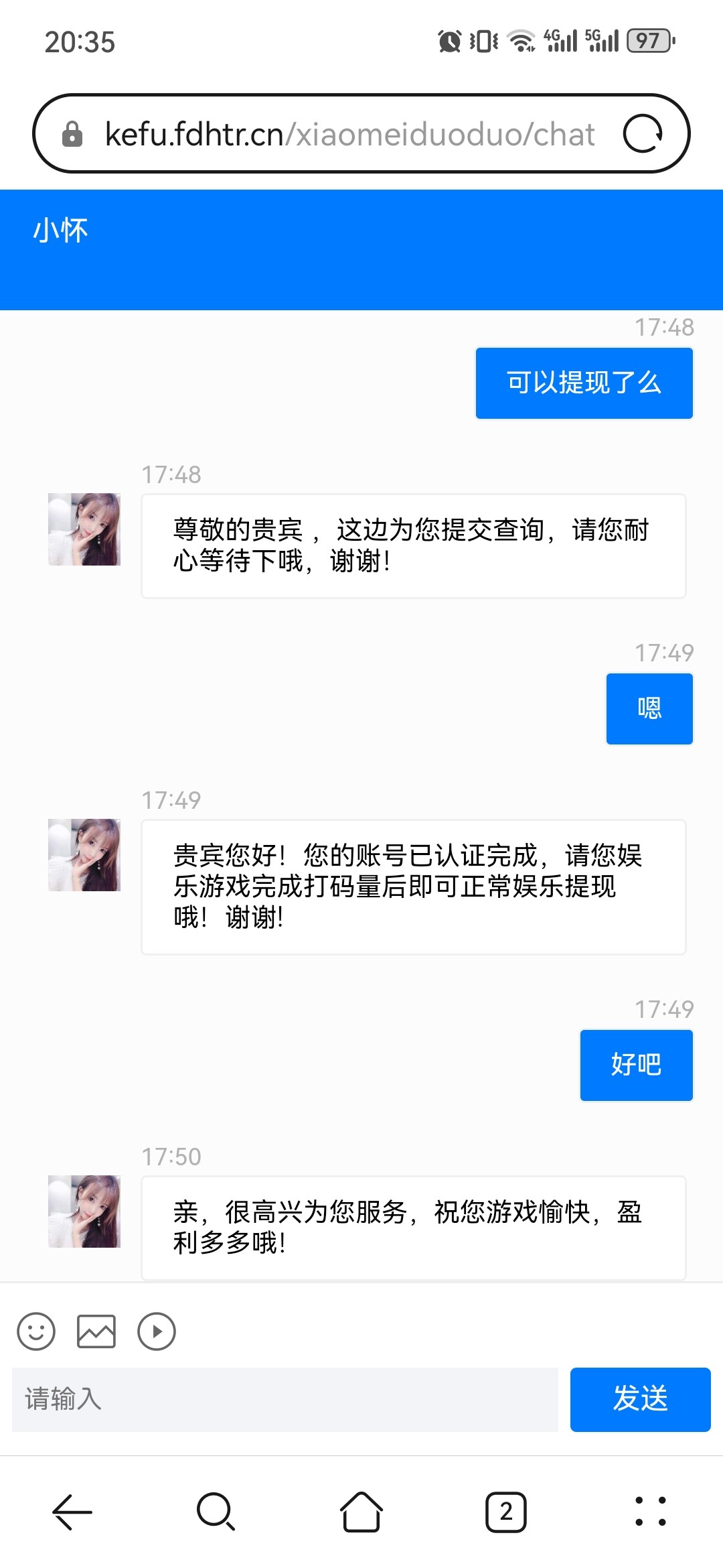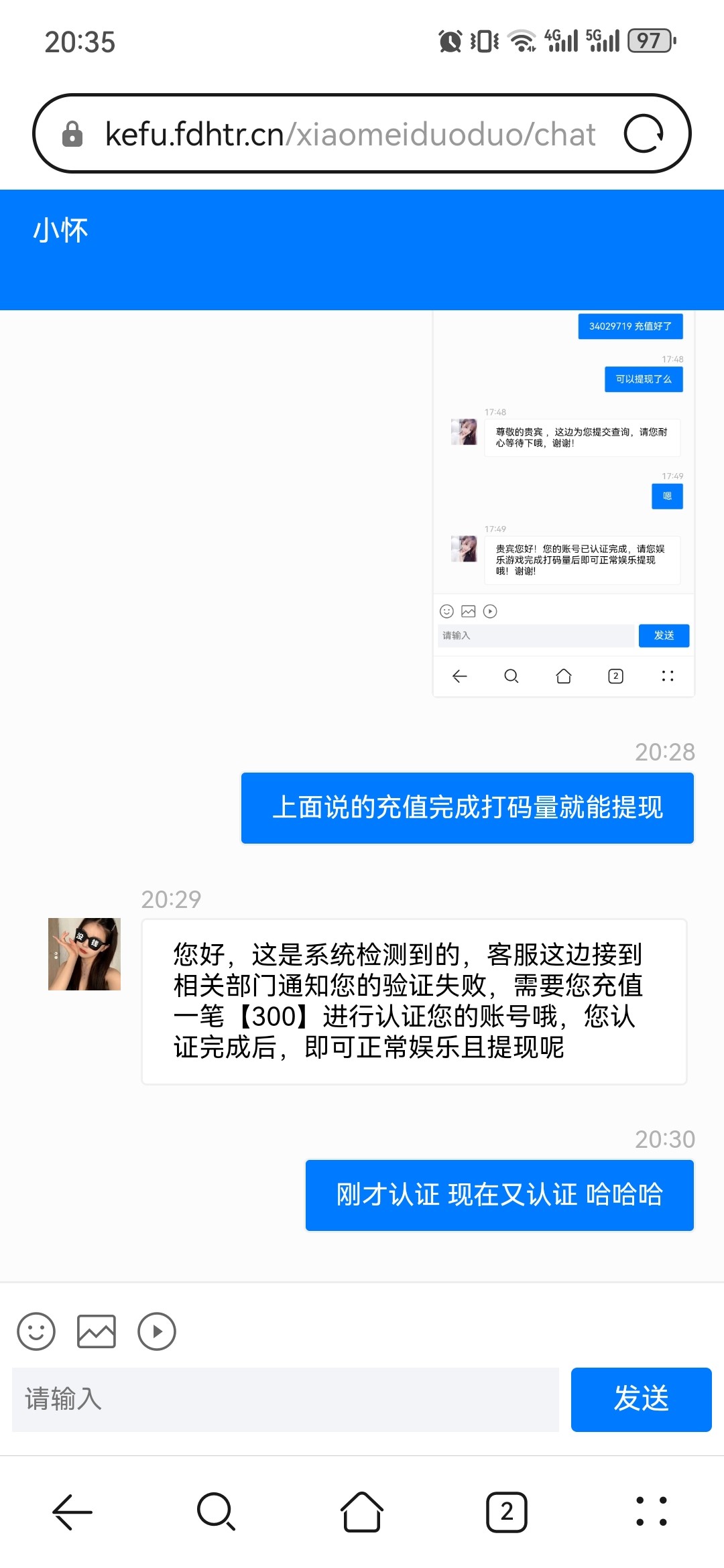 收到短信特邀的也别去玩了 赢了取款让充值 充完100充300 充完300让充1000 无限套娃 纯纯诈骗台