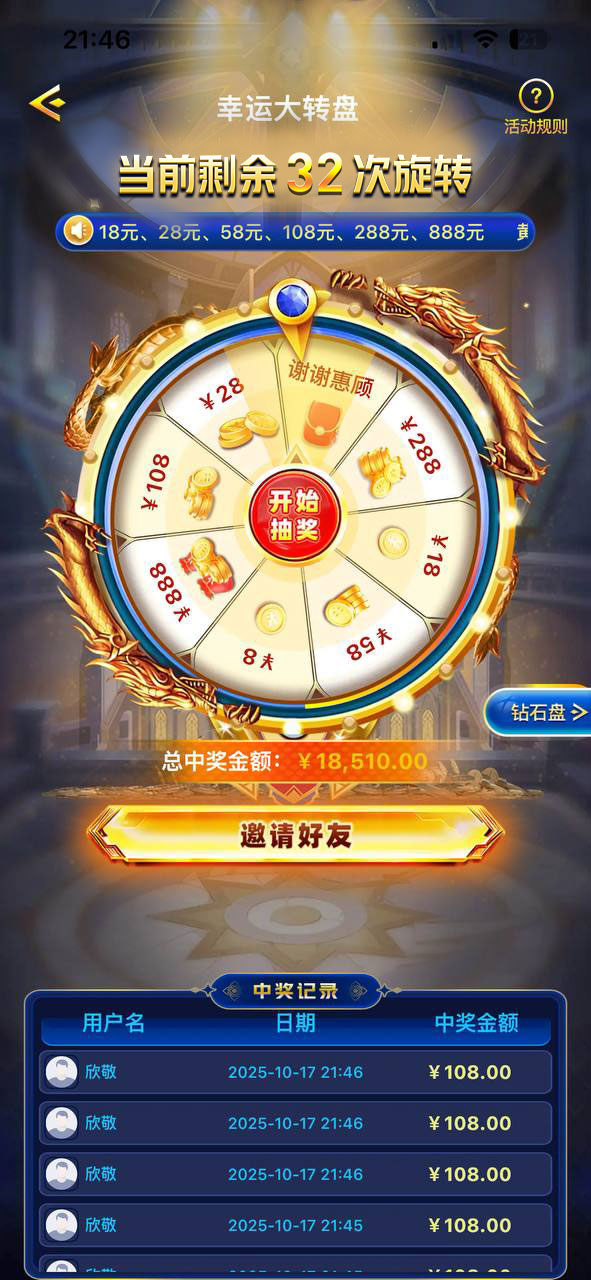 【参与方式】 打开 APP → 进入【悬浮窗 - 优惠大厅幸运大转盘】立即参与,开启你的幸运之旅,赶快邀请好友、完成任务,免费旋转轻松拿奖!