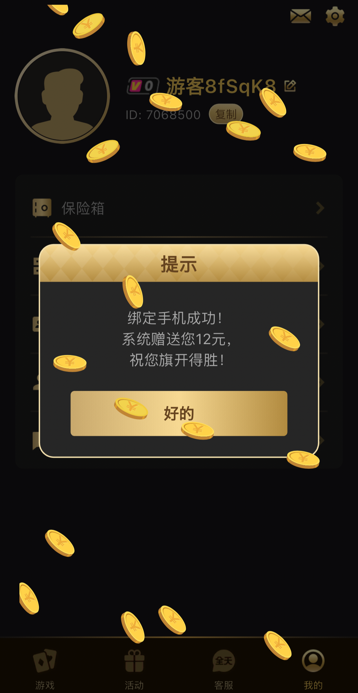 下载APP后点进我的右上角绑手机号领12彩金