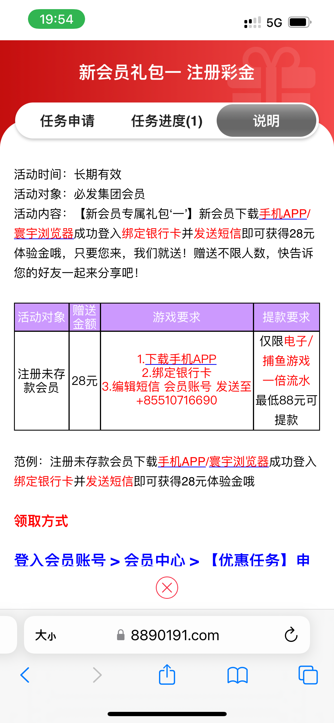 注册账号进去优惠发短信自助申请