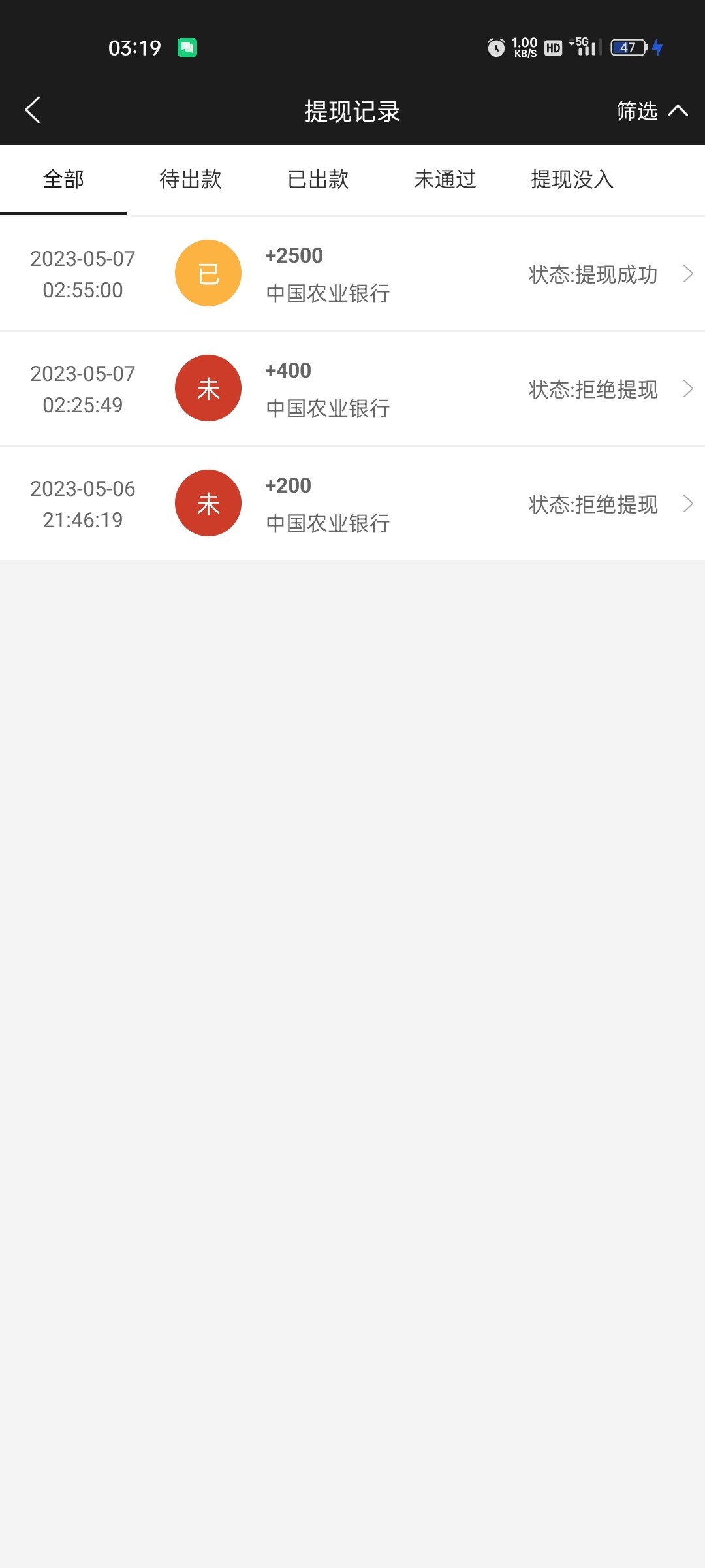 提现到了