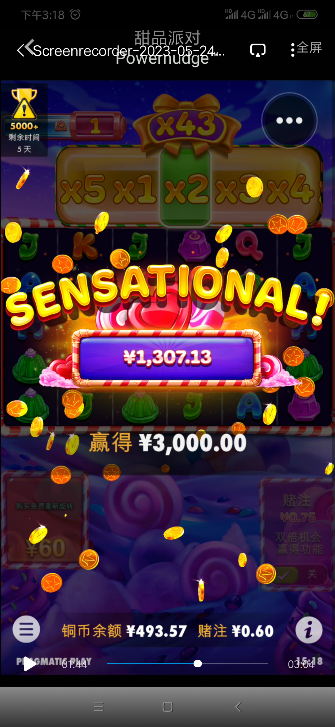 老哥们pp小众的免费可以买两手啊,一个游戏买两把不给就撤,两把都转就买到输为止然后换游戏,6毛博3000,干啊,5000倍封顶了可惜了还在爆,不然上w倍了,100上3400舒服了