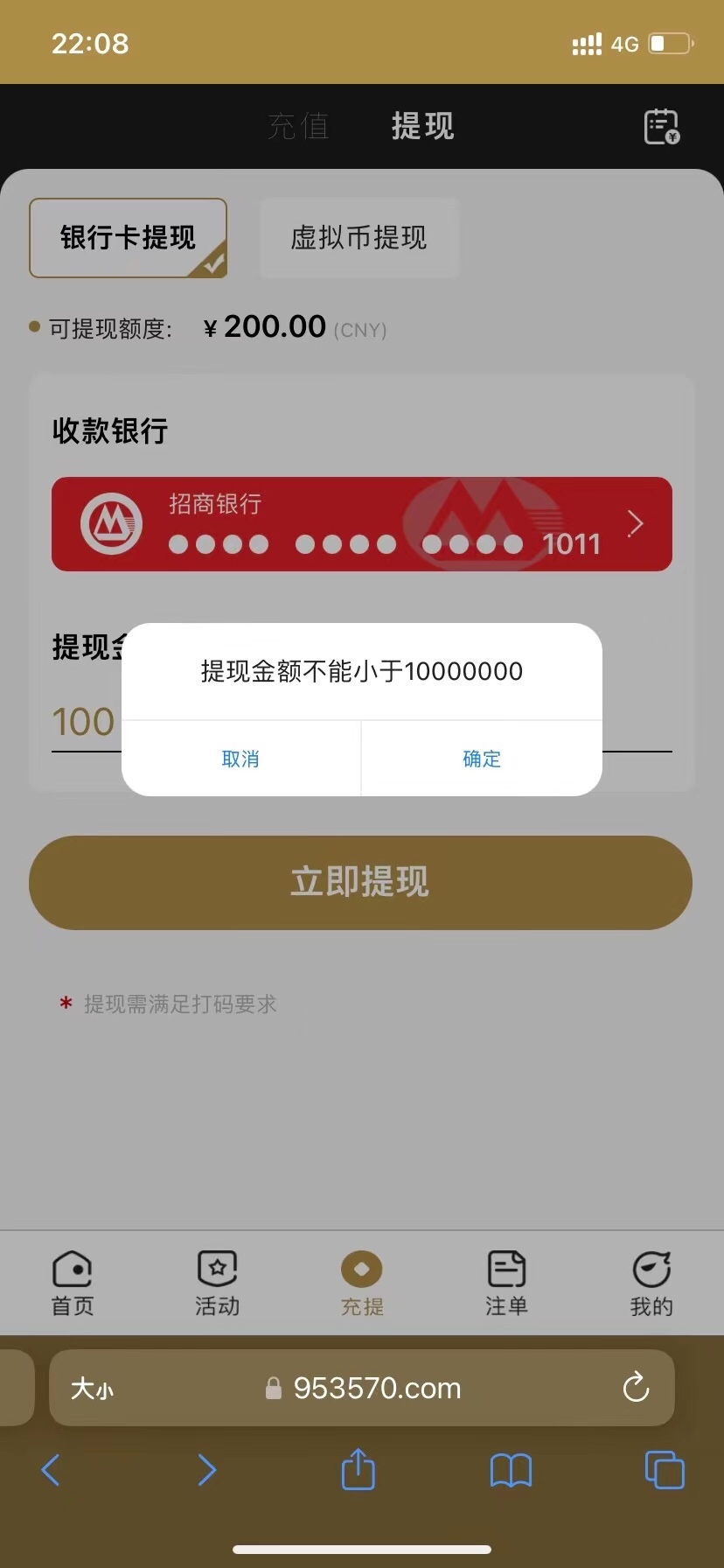 充一千万进去就能提了