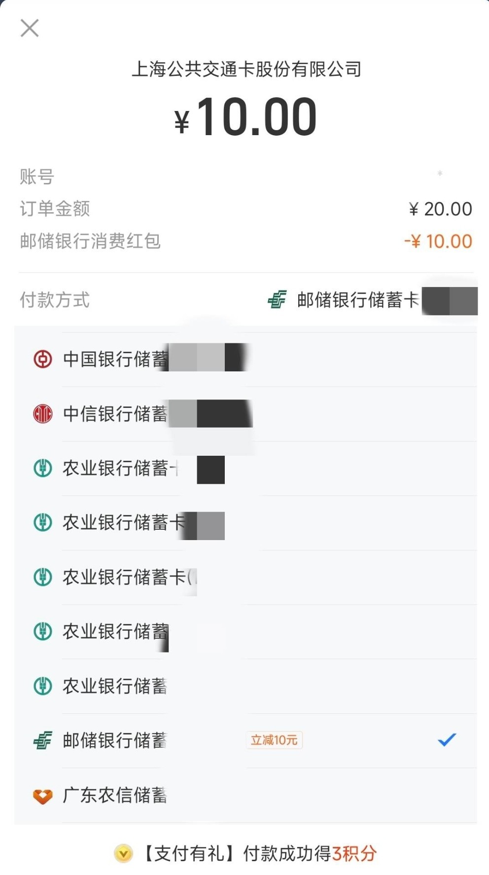 一个月一次!!!俗称通用10立减!!!因为哪里的邮储卡都能抵扣!!!领取成功,卡包不可见,支付时候抵扣!!!