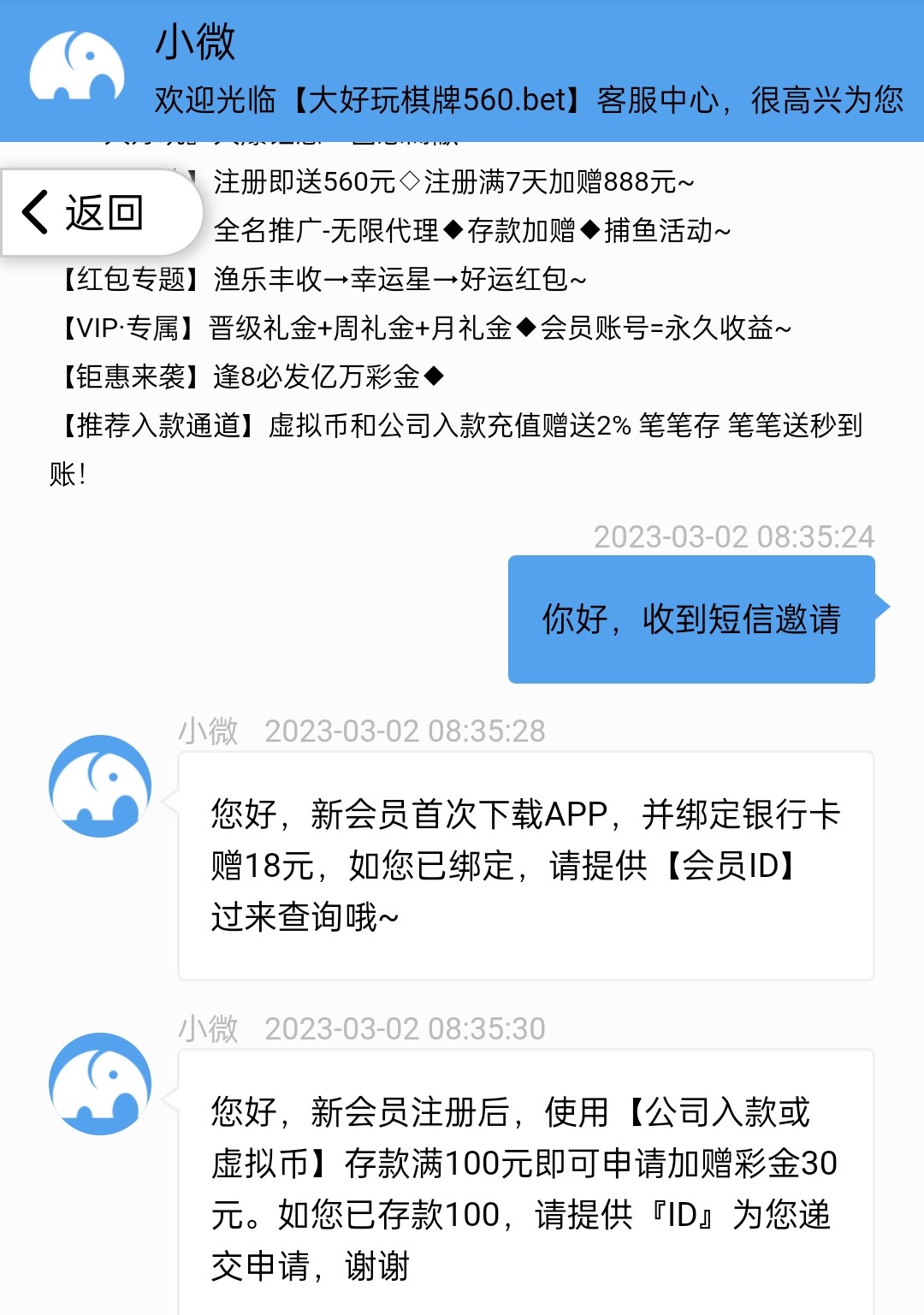 注册绑卡直接找客服,问特邀什么活动,发ID申请碰瓷,送8
