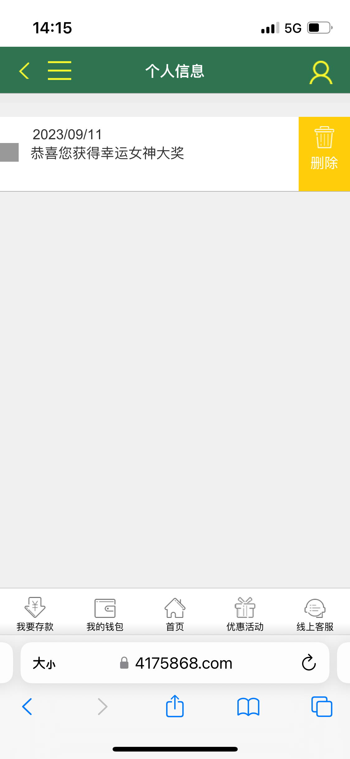 自己看站内信 送的彩金只能提钱能