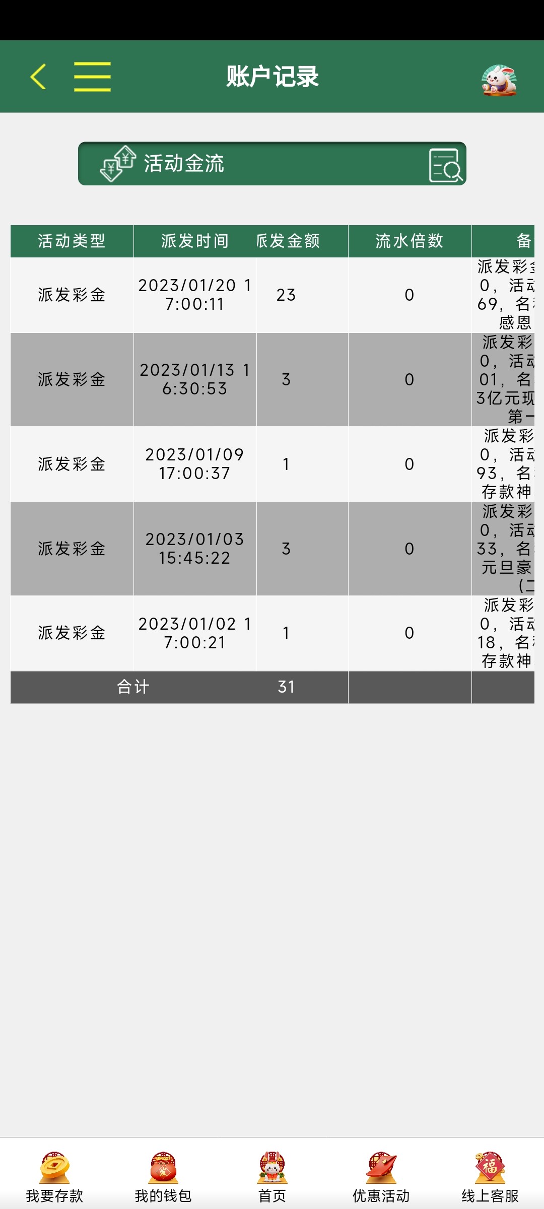 这台子挺有意思 显示派发23 余额还是70