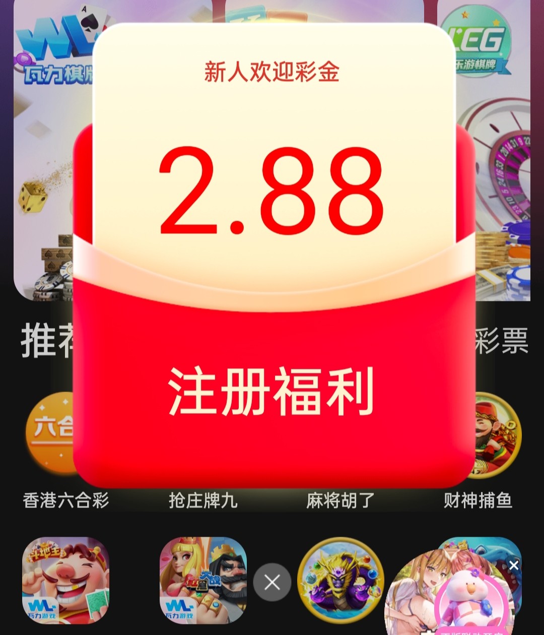 注册秒彩金2.88 绑定手机号 点击奖励秒3.8