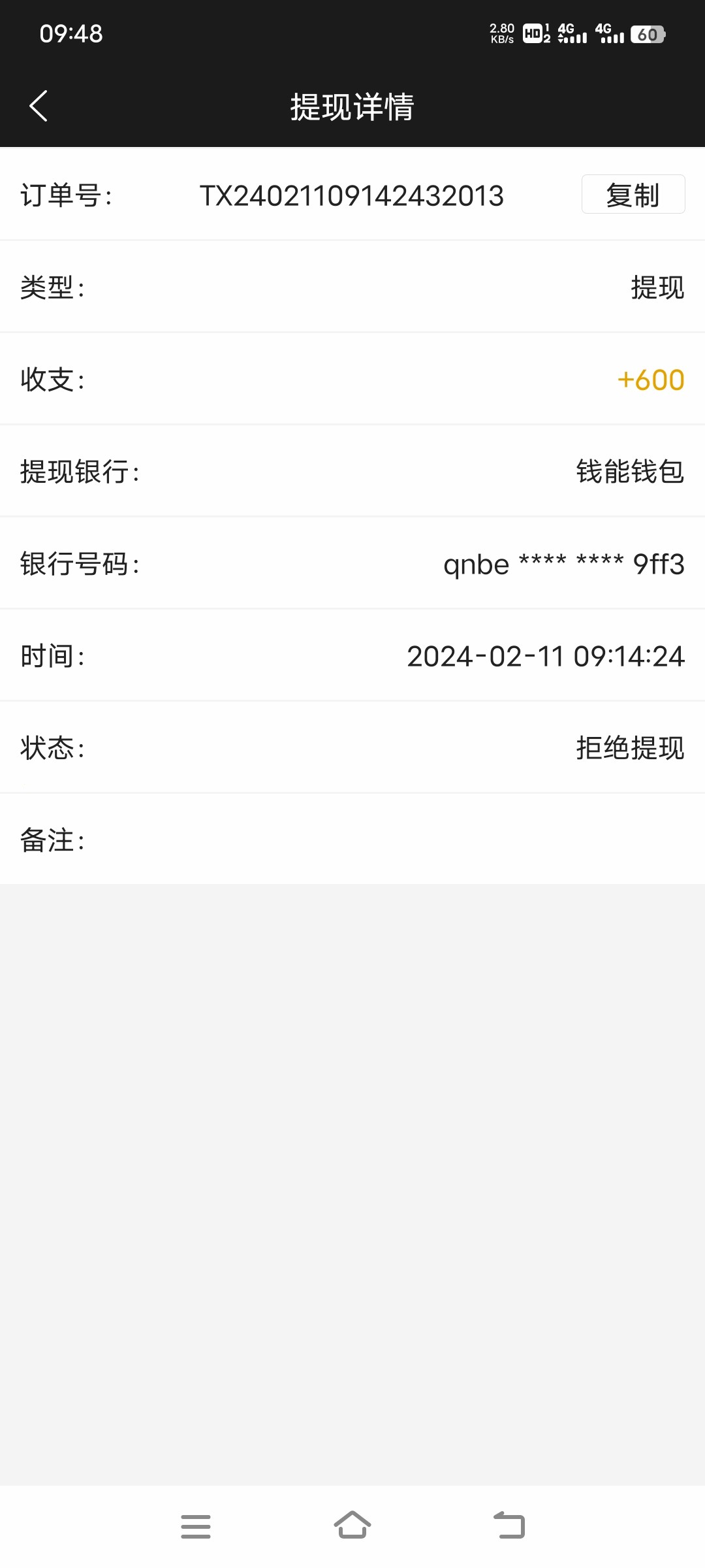 662回馈24打到1300故意输剩600,提现已拒绝到账,理由是彩金套利,账号没封,太好了又白嫖600。