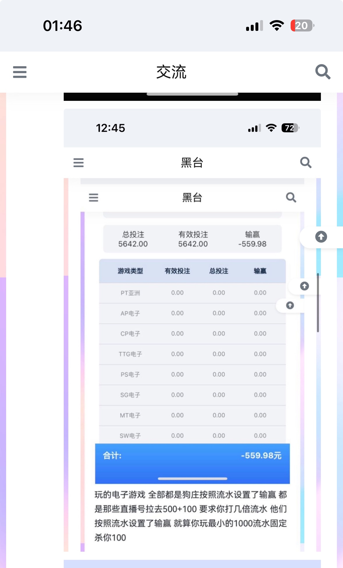 狗庄都是按照一千流水设定了输赢值 你进去游戏就是好看 全后天控制没有运气说