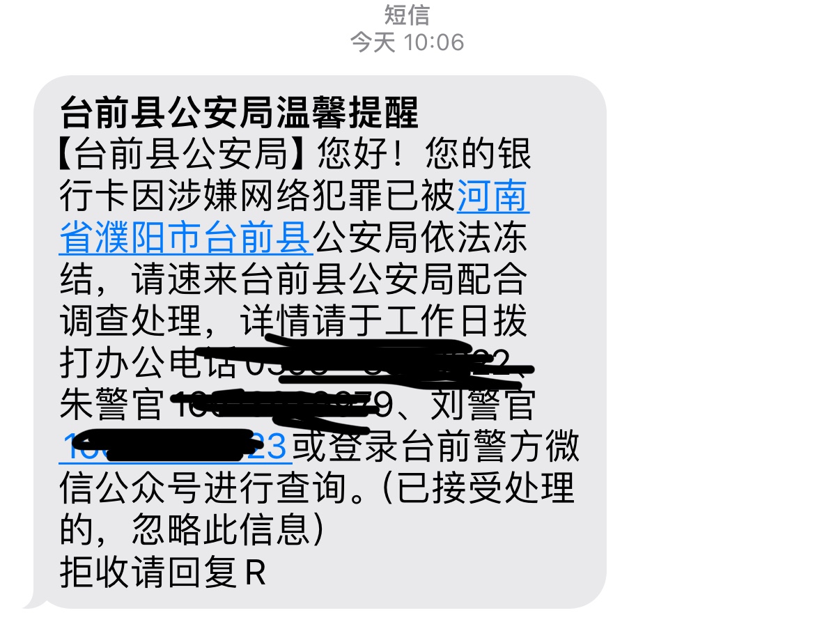 你这个是给你转钱的那个举报你了 要么就是你是一级涉案卡 这种亲自发短信的比那种不发短信的还狠