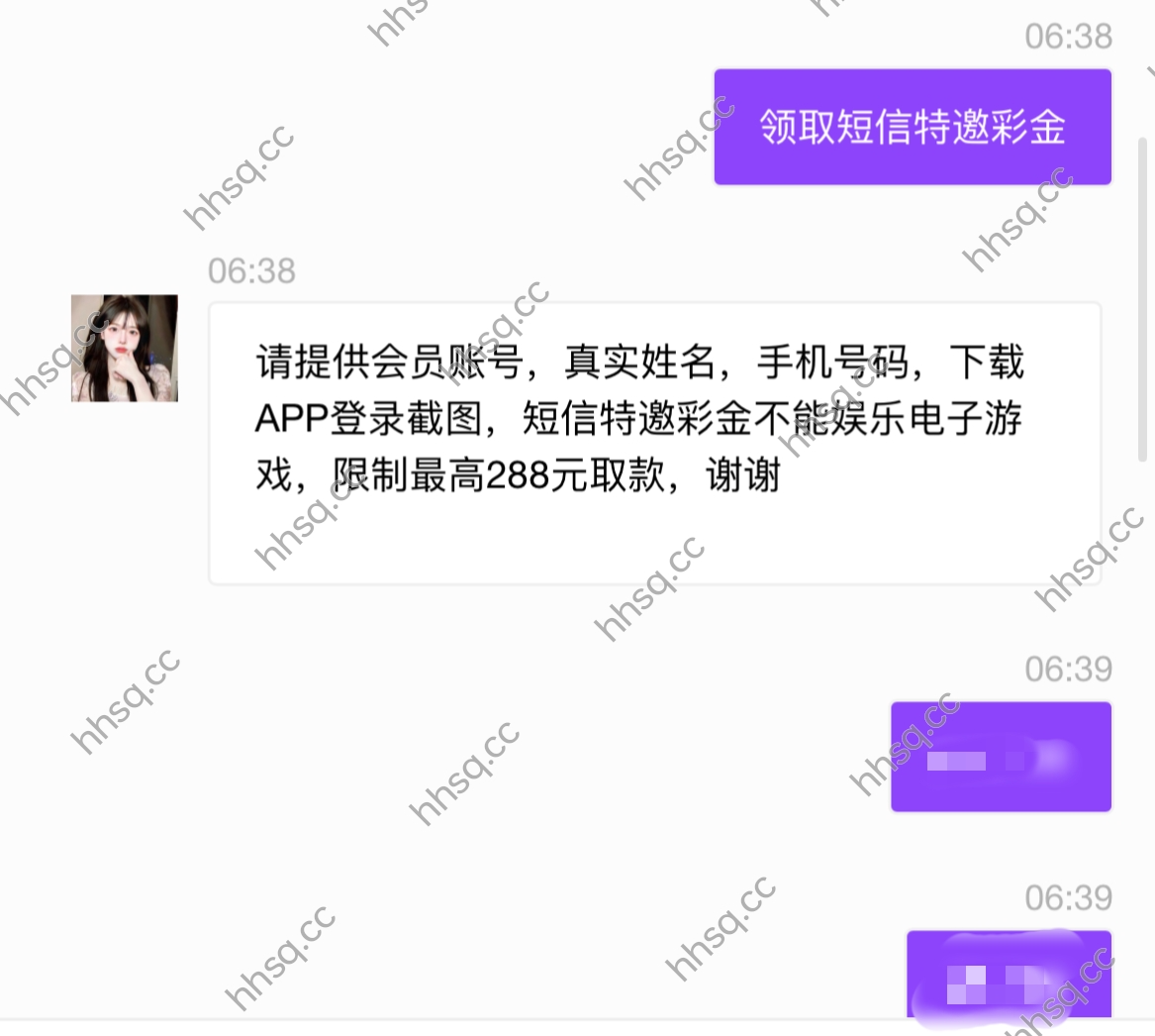 碰瓷短信特邀彩金,注册下载APP绑定手机号银行卡联系在线客服领取,亲测!最高提款288元,不能娱乐电子游戏!