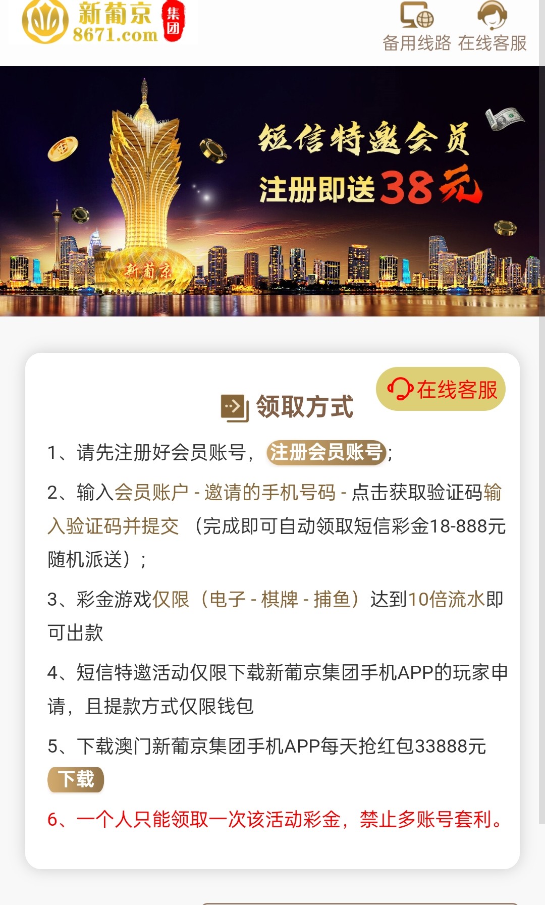 碰瓷特邀发短信秒28,10倍流水,限电子/棋牌/捕鱼 具体自行查看!