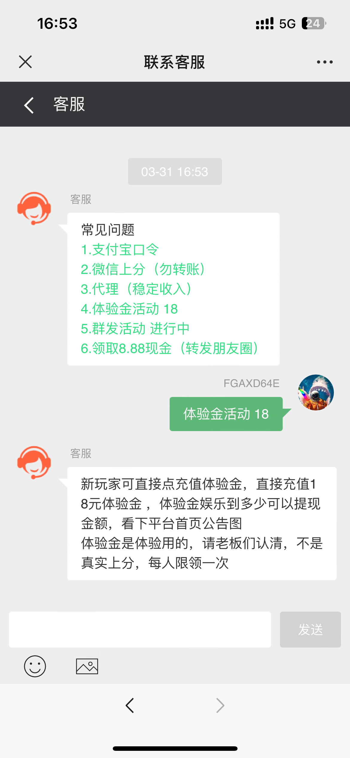 vx扫码充值有个体验金通道18体验金下分最低玩到128以上
