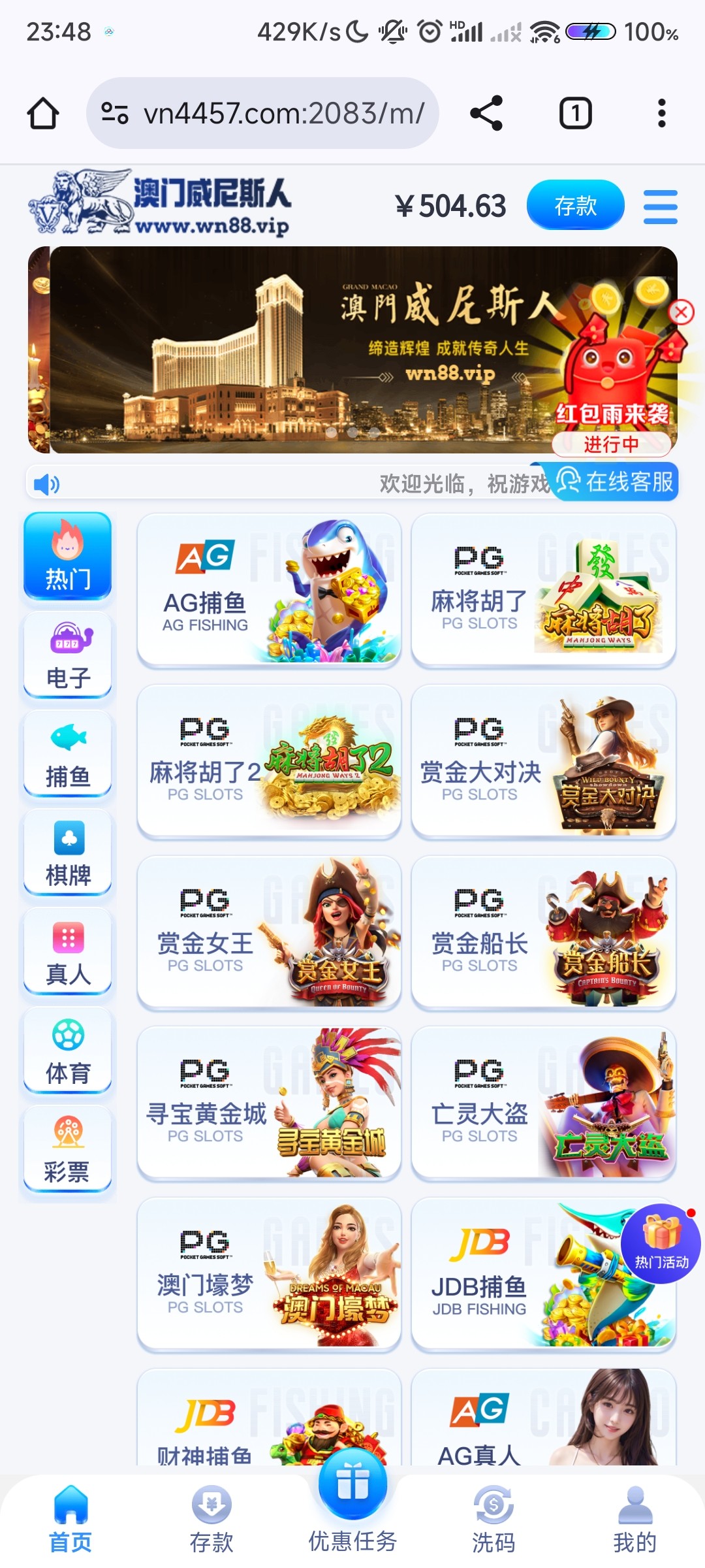 专门黑钱的台子。并且后台一直在控制,查看用户活动记录,如果你点击存款界面但是没有存款成功,过几天他们会打电话重新给你送88或者188,直到你打到提现的时候就告诉你要无限充值了!!记住了,是无限充值也不可能提款出来!!详细套路看图: