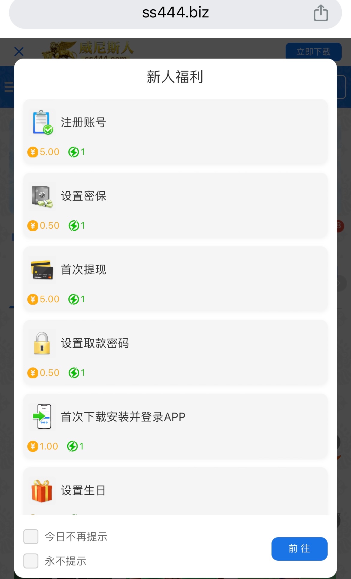 注册完善资料优惠里的任务有彩金领,新人礼物彩金随机,一倍流水