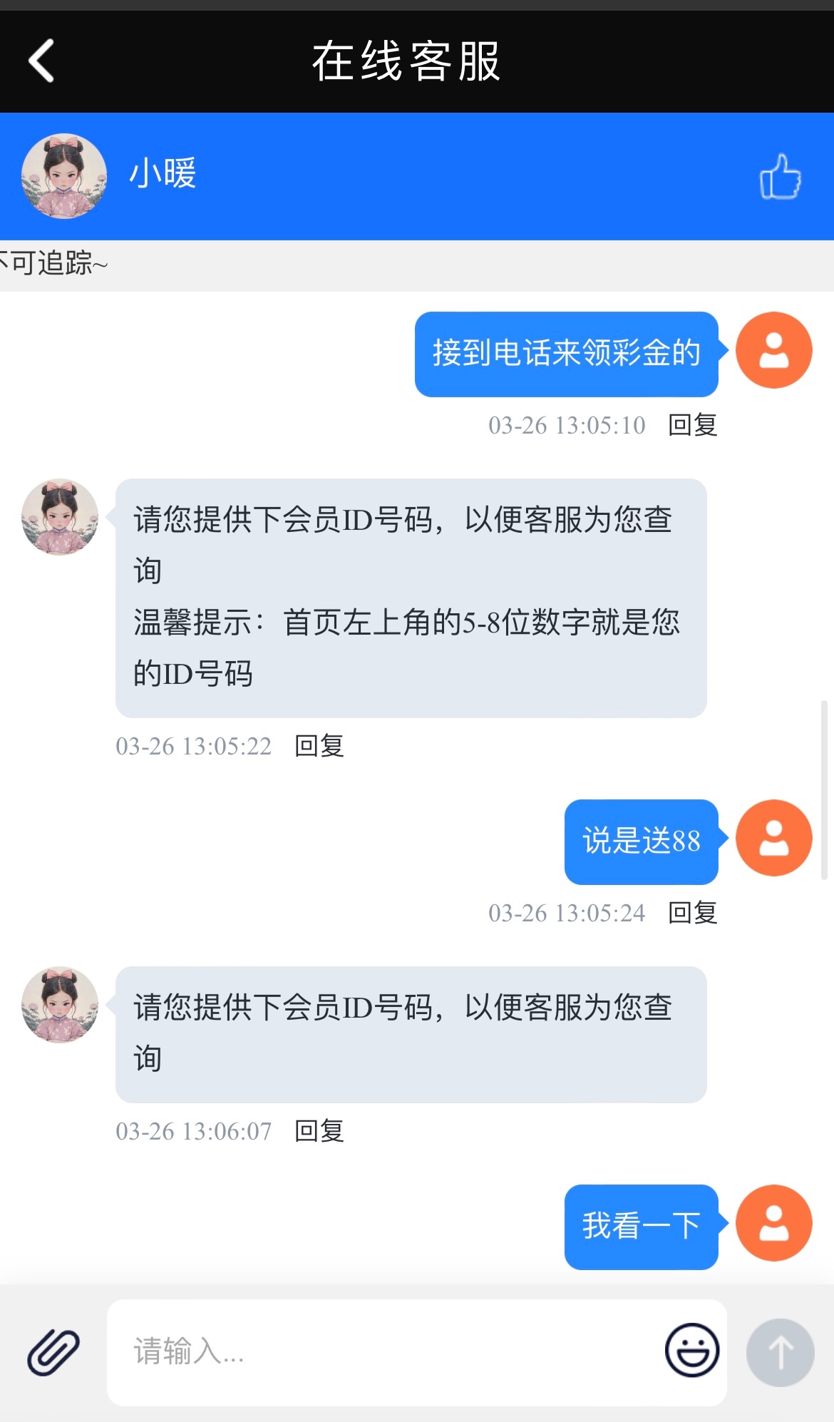 碰瓷电话彩金,注册复制ID发给客服查手机号,具体自测