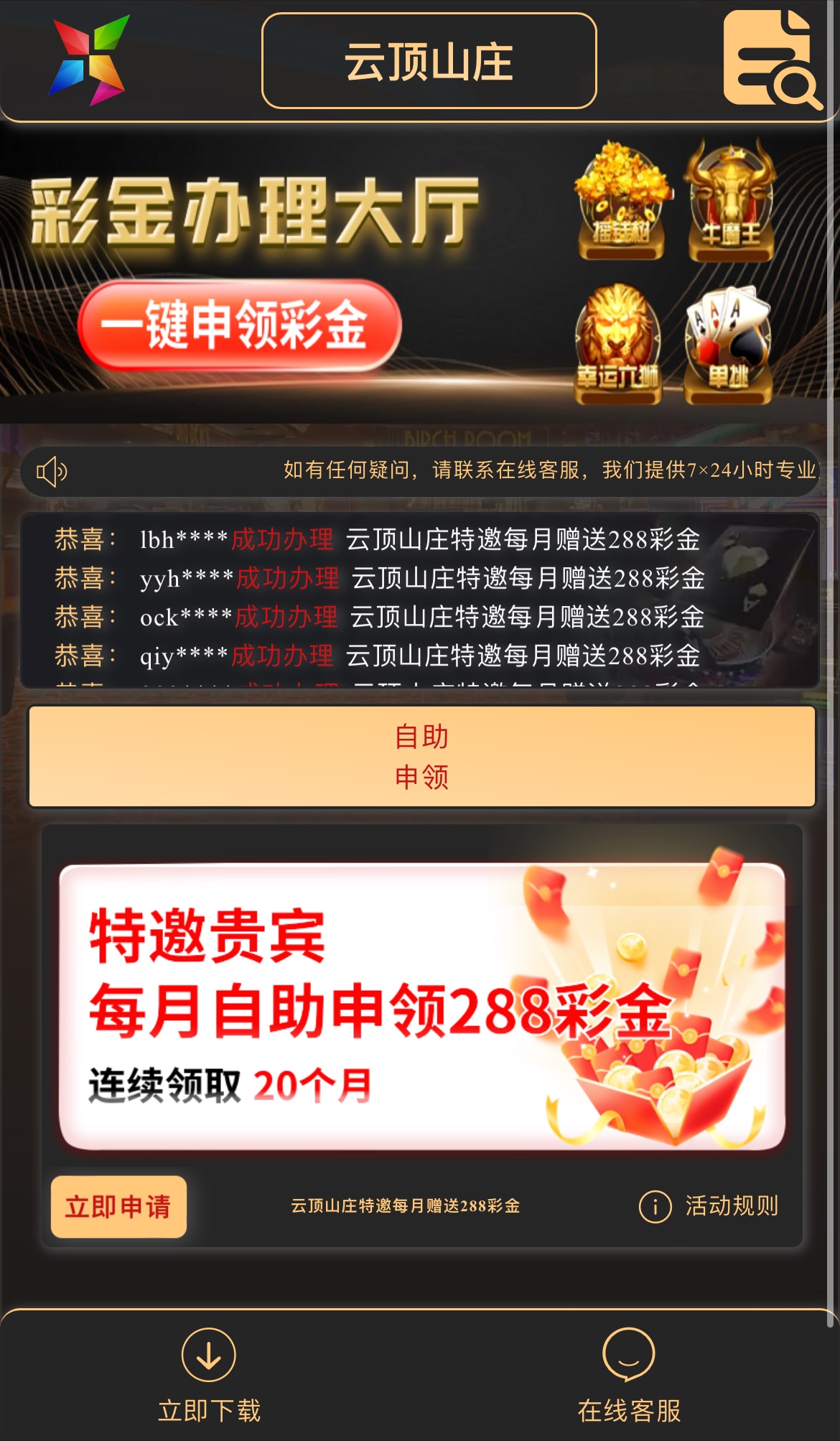 【云顶山庄ydsz】—✅— 特邀送288