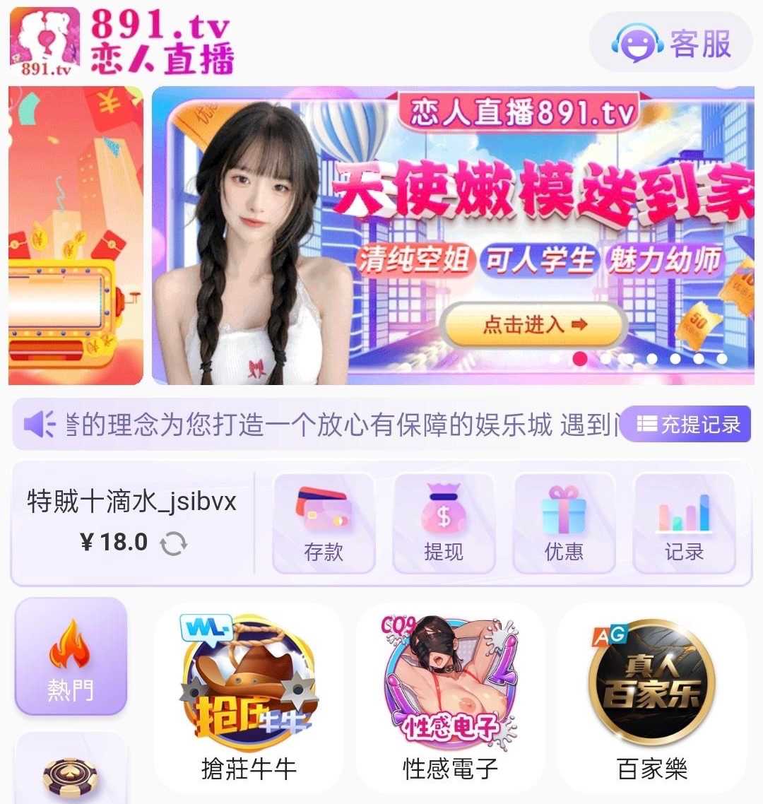 有注册过类似直播平台的兄弟可以去碰瓷看看自己是不是特邀,最低100提现,不限制游戏
