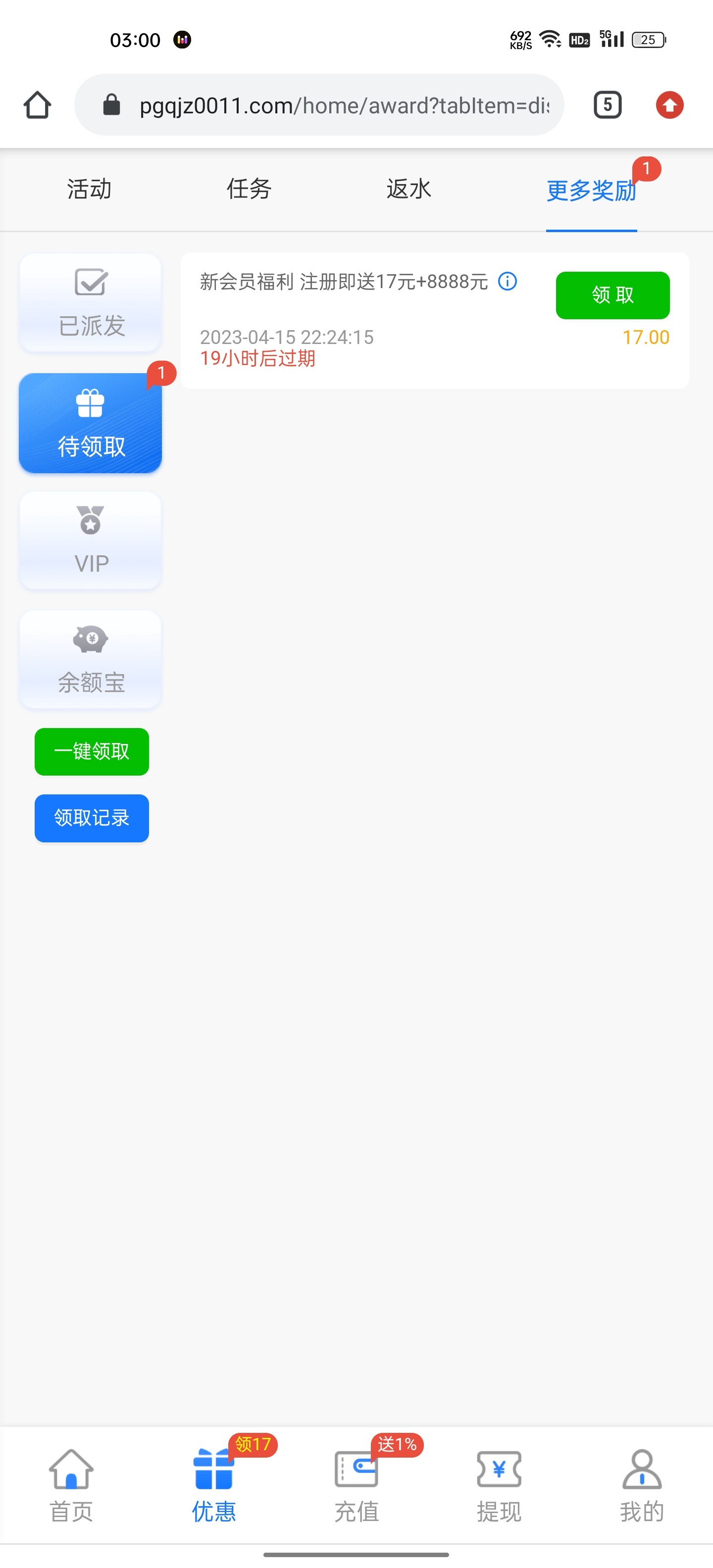 注册下载APP绑卡送5彩金,直接能电子。新注册会员17彩金(符合自动1小时自动派送,这个估计概率不大,白ip可以去试试),另加豹子号送彩活动。100出款,出款自测。都是撸白菜,没有尽量不要骂人哈!