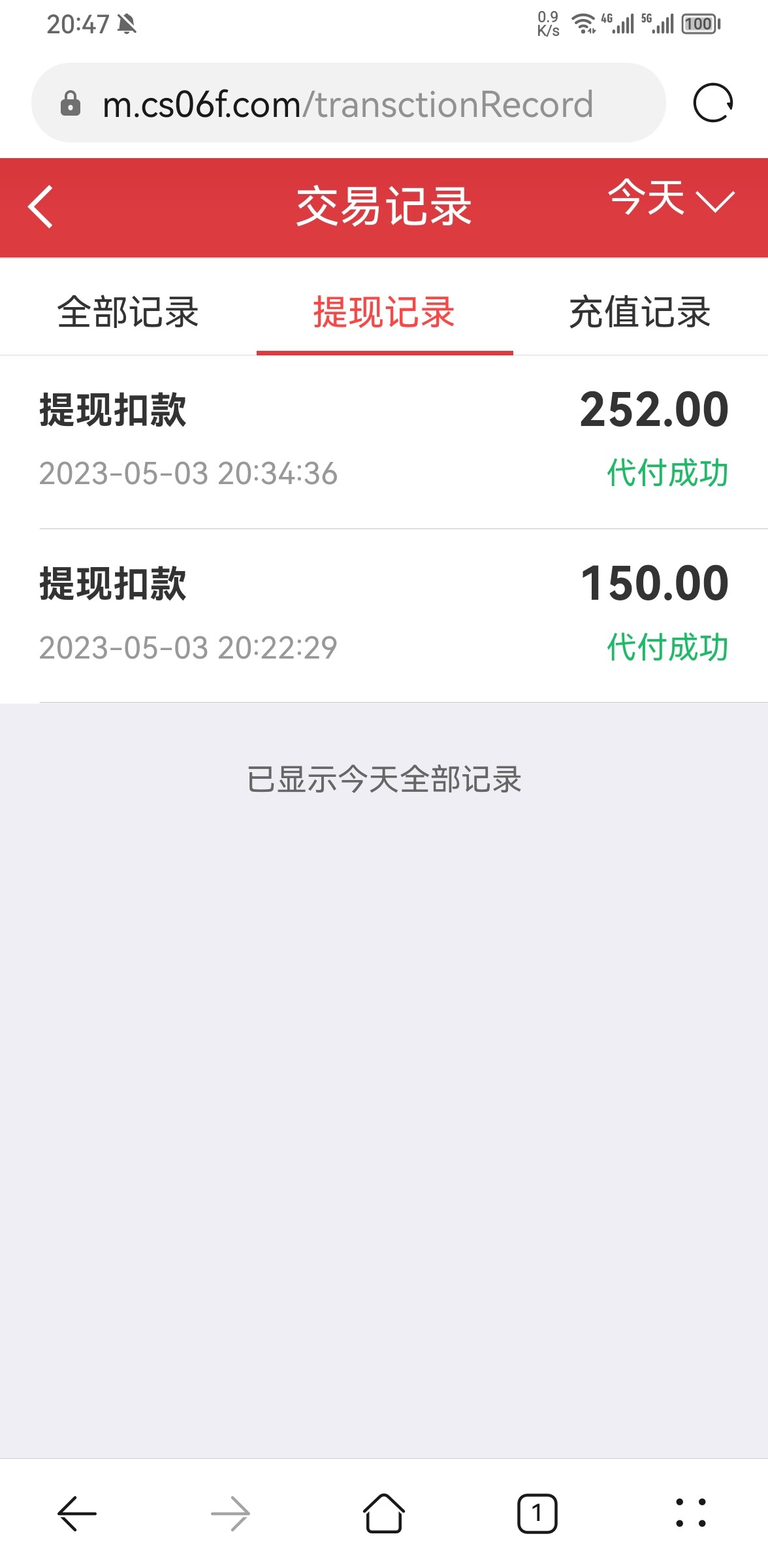 提了两次到我账上了?