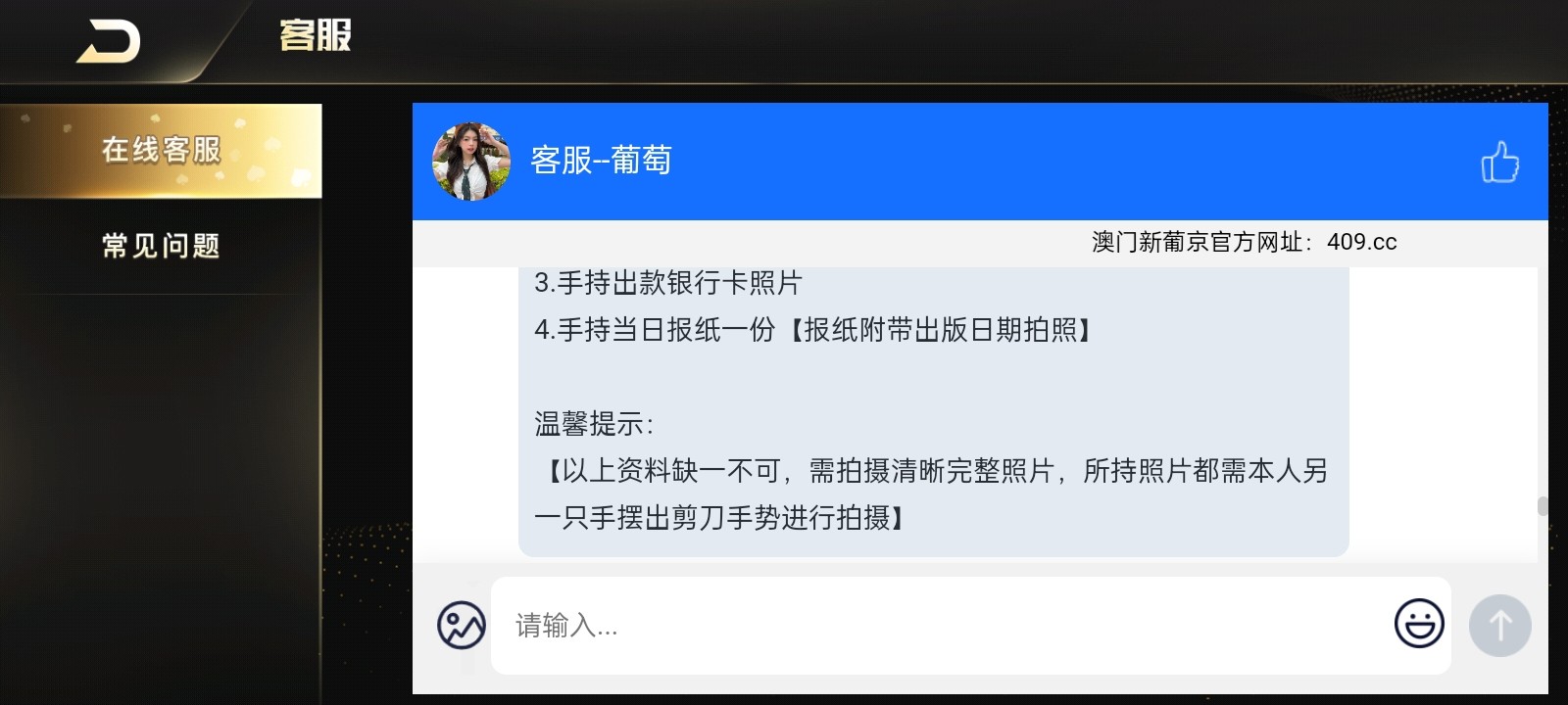 今天短信直接给的账号密码送了64.09彩金,登上去用彩金打到1200,提现需要充值余额的百分之30,充了400,然后提现退回了,找客服让我提供手持身份证,手持银行卡,手持个人户口本,还有一份当日报纸手持,这种情况有必要给他提供吗?