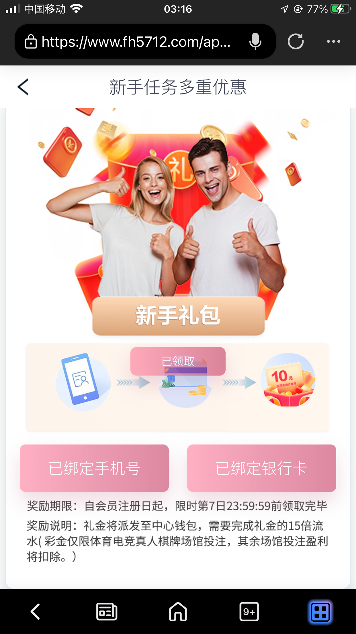 注册绑卡秒10(只能棋牌和体育)100上限,亲测到账