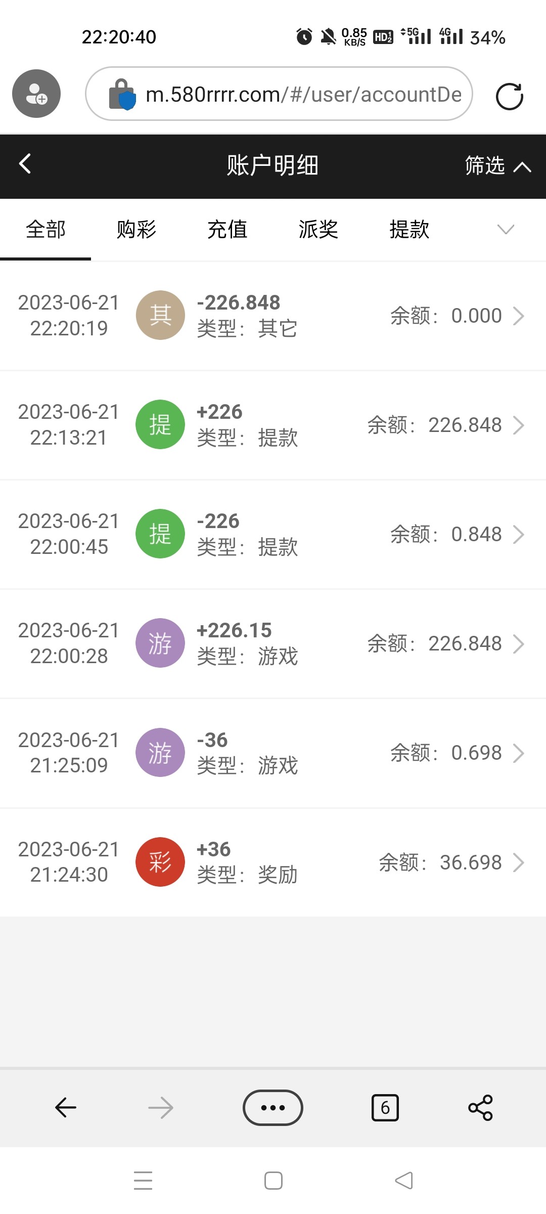 15分钟左右到账,5/6个号