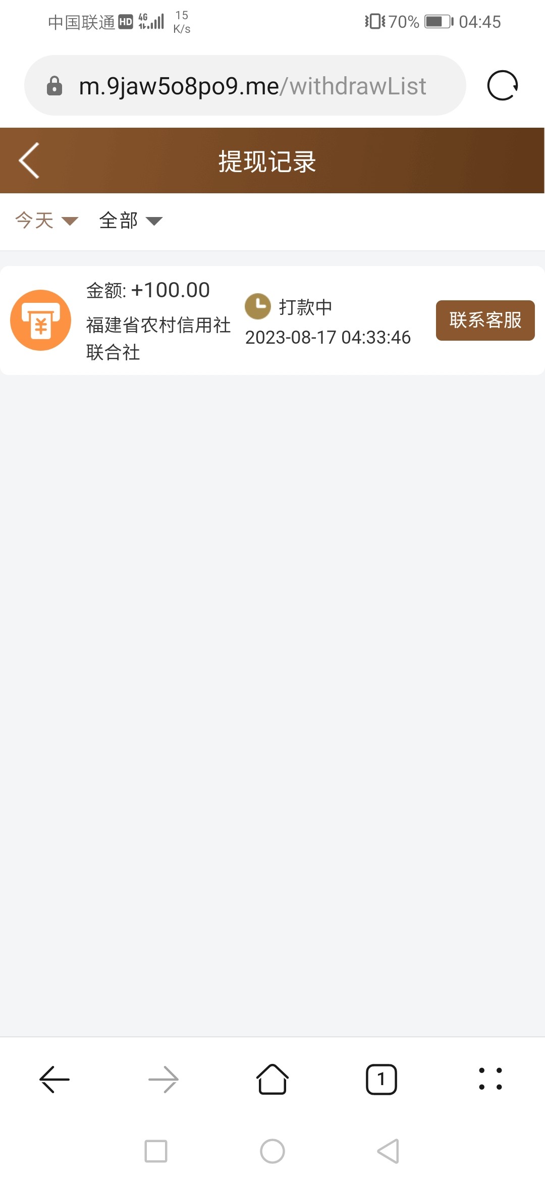 打到100提现了不知道会不会到账